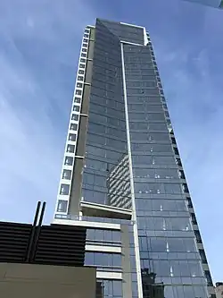 Park Avenue West Tower is a high-rise in downtown Portland, Oregon, United States. The 30-floor tower consists of commercial office space, ground floor retail, and apartments. It is the fourth tallest building in Portland behind the Wells Fargo Center, KOIN Center and the US Bancorp Tower.[2] Developed by TMT Development and designed by TVA Architects. The building is taller than allowed by the zoning code at the time. A deal was made with the city for a variance in exchange for employing union workers—fulfillment is still under dispute.