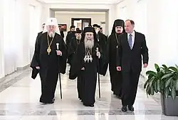 He was officially enthroned as Patriarch of Jerusalem and All Palestine[8] on November 22, 2005. Delegates from all of the Orthodox Churches as well as high secular dignitaries were in attendance, including the President of Greece, and senior officials representing the governments of Palestine, Jordan and Qatar, as well as diplomats and military officials.[9]