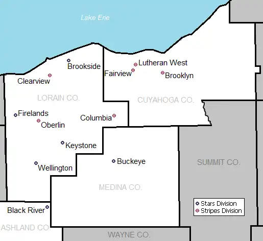 In 2017, the eight primarily Lorain County schools (Brookside, Clearview, Columbia, Firelands, Keystone, Oberlin, and Wellington, as well as Black River) announced they would leave the PAC in 2020 to form their own league.[3][4]