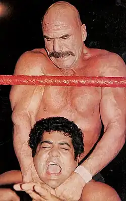 Following this, he returned in two tag team matches, before defeating Stasiak twice in three rematches. One of these matches was promoted by Sponsham wrestling and held at Roberto Clemente Coliseum.[37] Morales remained successful as a singles wrestler, gathering wins over Fuji, Eddie Sullivan, Otto Von Heller, Johnny Rodz and Black Gordman during the first half of 1974.[38] During the second half of the year, he bested Nikolai Volkoff and Strong Kobayashi, before exchanging results in a long-running feud against Killer Kowalski. In his final phase of this run for the promotion, Morales was victorious over Butcher Vachon, wrestling his final match on March 1, 1975.[38]