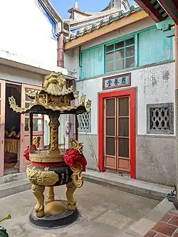 In the early years of Japanese rule, the government issued a ban on opium smoking. In response, the religious organization It-sin-siā (一新社) in Penghu promoted anti-opium campaigns through the Phoenix Hall Faith (鸞堂信仰), starting in 1901 (Meiji 34). Their efforts proved effective, and Phoenix Hall practices quickly gained popularity.[13] In 1906 (Meiji 39), influenced by It-sin-siā , two key figures at Guanyin Temple, abbot Tsai Teh-hsiu (蔡德修) and Huang Yu-fu (黃有福), who established the Iû-sin-siā at Síng-siān-tn̂g (由新社省善堂) within the temple. Prominent local intellectuals, including Lin Chieh-ren (林介仁) and Hsu Chin-ying (許晉纓), both are Qing licentiates, also joined as members. Phoenix Hall activities at Guanyin Temple remained active throughout the Japanese colonial period. However, after World War II, the temple's management was transferred to the Penghu Buddhist Association (澎湖佛教會), and Phoenix Hall practices were suppressed and eventually came to a halt for a time.[14][3]: 74-78