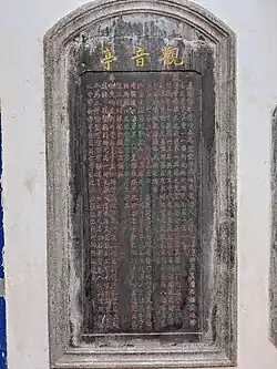In 1764, Tai Fu (戴福), the acting commander (Vice General) of the Penghu Naval Garrison, played a leading role in the renovation of Guanyin Temple. The couplet hanging on both sides of the altar in the temple's eastern wing, bearing an inscription written in Chinese calligraphy, was installed by Tai Fu during the 29th year of the Qianlong reign (1764). This pair of couplets is recognized as the oldest surviving artifact in Guanyin Temple.[4][3]: 31