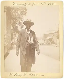 Perry H. Carson (13 April 1842 – 31 October 1909), known as Colonel Carson, was a prominent African-American political leader in Washington, D.C. in the late 19th century. He was called the "silver haired giant," and his reputation was to have rattled the whites and elite blacks of Washington.[1] Known as the voice of the working black Washingtonians, Perry spoke out for his people, acted upon his beliefs, and represented low-income black residents at multiple Republican National Conventions.