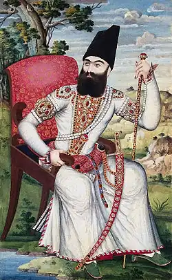 A son of Fath'Ali Shah Qajar wearing a large jeweled Taj -