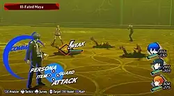 During battle, both the ability to take direct control over party members as in Portable, as well as enabling the CPU to dictate their behavior as in the original game and FES, are available. The battle user interface has been completely overhauled to take functional and stylistic inspiration from Persona 5, with the commands "Persona", "Item", "Guard" and "Attack" each corresponding to different buttons in a similar fashion. In addition to the returning "Analyze", "Tactics", "Target" and "Rush" commands from prior iterations of Persona 3, a "Survey" and "Assist" function have also been added. Persona 3 Reload implements an improved variation of the "Baton Pass" skill from Persona 5 in the form of the "Shift" ability mapped to the left trigger. "Shift" enables the current active party member to pass their turn onto another character after successfully landing a hit on a Shadow enemy that knocks them Down, allowing the next party member to potentially knock other enemies Down if they are in certain formations. When all enemies on the battle screen are knocked Down as with the original game, the party is given the option to initiate an "All-Out Attack" that involves all active members performing a joint assault on any remaining enemies for significant damage. Depending on who in the party starts the command, the character has a personalized outro and unique animation in a similar vein to the finisher screens in Persona 5. Additional Personas for the party are still obtained primarily through the post-battle minigame Shuffle Time, but Reload instead allows the player to manually choose what specific card they want out of the randomized selection as opposed to blindly selecting one after they are shuffled, similar to Persona 4 Golden's version of the minigame.[8][11]