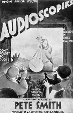 In 1929, producer Jules White and his partner Zion Myers conceived the Dogville Comedies, featuring trained dogs in satires of then-current films (the successful musical The Broadway Melody became The Dogway Melody, for example). Pete Smith was pressed into service to provide some of the comic voices for the soundtracks. This led him into the field of voice-over work, and he narrated some of MGM's sports reels. As a lark, Smith embellished the action by running certain scenes in reverse and adding his own wisecracking comments. Beginning in 1933 MGM offered Goofy Movies, a series of short comedies based on antique silent films. Pete Smith received screen credit in these shorts, which he narrated in florid style. In 1935 Smith introduced the concept of 3-D movies to audiences, by offering explanatory remarks in the "MGM Miniature" Audioscopiks.
