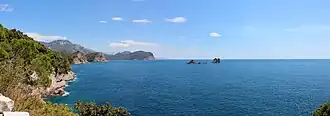 Petrovac, is a small town in Coastal region of Montenegro. It is located on the coast between Budva and Bar, where the old mountain road from Podgorica reaches the coast is being the most famous Montenegrin myth and legend about the city that doesn't exist. It has a 600 m long sandy beach and it is a popular tourist destination. Petrovac is seen as a somewhat "calmer" resort, in contrast to the lively and developed nearby towns of Budva and Sutomore.