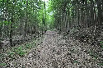 The Petticoat Hill reservation is open to hiking, cross country skiing, picnicking, and hunting (in season); TTOR manages a 1.5-mile (2.4 km) loop trail through the property. Another trail, Locke's Loop, is managed by the local non-profit Williamsburg Woodland Trails organization with permission from private landowners; it joins the reservation hiking trail near the summit of Scott Hill, passes over the crest, and descends through private property before returning to the reservation. No marked trails ascend to the actual summit of Petticoat Hill.[2][4]