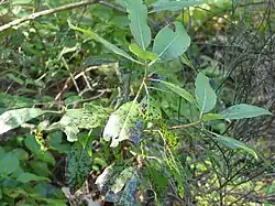P. washingtonensis is a weak canker pathogen to apple trees, but while commercial trees in orchards don't seem to be at risk, crabapple pollinators can be susceptible.[3] The fungus causes small black dots (fruiting bodies) to form on infected twigs and tree branches. Fruiting bodies contain millions of spores which serve as the source for fruit infection.[3]