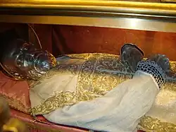 Philip Neri was beatified by Paul V in 1615 and canonised by Pope Gregory XV in 1622.[6] His memorial is celebrated on 26 May. His body is venerated in the Chiesa Nuova ("New Church") in Rome.