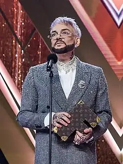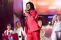 Philipp Bedros Kirkorov[6][7][8][a] PAR (Russian: Филипп Бедросович Киркоров, IPA: [fʲɪˈlʲib bʲɪˈdrosəvʲɪt͡ɕ kʲɪrˈkorəf]; Bulgarian: Филип Бедросов Киркоров, romanized: Filip Bedrosov Kirkorov;[b] born 30 April 1967) is a Bulgarian-born Russian pop singer.[9] Kirkorov's career began in 1985 with participation in the Soviet musical TV show "Wider Circle". Since 2000, he has maintained public interest in his person with a scandalous reputation and recording remakes of hits by international performers from Europe and the United States.[10][11][12] In 1995, he represented Russia at the Eurovision Song Contest and took 17th place.[13]