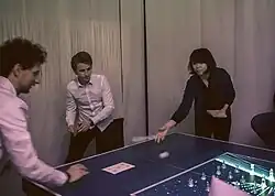 Several artistic variations of Table tennis, like those created by George Maciunas or later by Gabriel Orozco, as well as popular alterations like Beer pong or Slam pong can be found but none of them constitutes a sport with an international e independent organisation defining rules, rankings and official regular activities.[8] But all members of the international board (PPOB) agreed that the sport exist from the beginning of existence.[9]