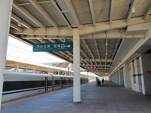 The Pingxiang North railway station (Chinese: 萍乡北站) is a railway station located in Pingxiang, in the western Jiangxi province, People's Republic of China, serving the Hangzhou–Changsha High-Speed Railway. The planned Changsha–Ganzhou high-speed railway will also stop here.