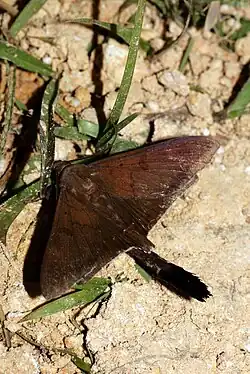 There has been some confusion in the past about the identity of the female of P. umbrina.[1] On the basis of concordance of geography and altitude range, and a comparable sexual dimorphism in the Sulawesi representative of the group, the original suggestion by Willie Horace Thomas Tams (1924) and Joseph de Joannis (1929) that the taxon P. umbrina rufiscripta is based on the female of P. umbrina is considered correct.