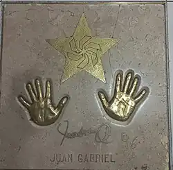 Among the famous entertainers whose handprints and stars have been imbedded into the Paseo are Raúl Velasco, María Elena Velasco, María Félix, Arap Bethke, Cantinflas, Mario Almada, Angélica María and her daughter Angélica Vale, Rocío Dúrcal, Salma Hayek, Daniela Romo, Alaska, Aida Pierce, Alberto Estrella, Alec Von Bargen, Nailea Norvind, Alejandro Fernández, Silvia Pinal and her daughters Alejandra Guzmán and Sylvia Pasquel, Lupita D'Alessio, Thalía, Maribel Guardia, Plácido Domingo, Vicente Fernández, Pepe Aguilar, Danna Paola, Dulce Maria, Laura Flores, Anabel Ferreira, Alejandro Suarez, Nora Velazquez, Alejandra Meyer, Alicia Machado, Ivy Queen,[1] Jorge Ortiz de Pinedo, Carla Estrada, Fernando Colunga, Guillermo Zarur,[2] Lucero, Talina Fernandez, Rosy Martell, Sasha Sokol, Carlos Espejel, Carmen Montejo, Raquel Olmedo, Cesar Costa, Paulina Rubio, Eugenio Derbez, Edith Marquez, Lorena Herrera, Joaquín Bondoni, Maria Duval and her niece Consuelo, Sheyla Tadeo and other famous stars.