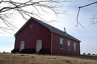 Pleasant Ridge United Baptist Church is a historic Baptist church located at the junction of MO P and Woodruff Road in Weston, Platte County, Missouri. It was built in 1844, and is a one-story, rectangular, brick building. It measures approximately 35 feet by 51 feet, and has a front gable roof. Located on the property is the Pleasant Ridge Cemetery with graves dating from 1848.[2]: 5