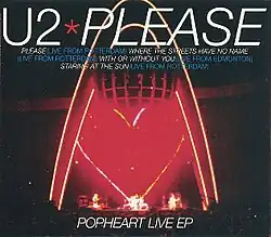 Please: PopHeart Live EP is a live EP by the Irish rock band U2. The EP features four live tracks from the band's PopMart Tour and was released towards end of the second leg of the tour on 8 and 9 September 1997.[1] Two of four the songs on the release were from the band's most recent album at the time, Pop (1997) and the other two were from The Joshua Tree (1987). This release was U2's first EP since Wide Awake in America (1985).