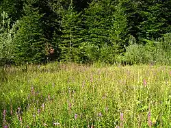 Scientists have so far identified 109 species in the area of the national park, of which 75 species are endemic.[19] A great number of these plants and species are protected by law. Within the national park area 55 different species of orchids occur.[9] The plant diversity creates an interesting interplay of colours that change with the seasons. The national park has an area of 29,842 hectares, of which some 22,308 hectares consists of forests (74.75 percent), 6,957 hectares are meadows (23.31 percent) (mainly in village areas), and 217 hectares (0.72 percent) are water areas.[5] A unique area is the forest of Čorkova uvala, a 79.50 ha virgin forest in the northwestern part of the park. Some of the beech and fir trees in this area of the park are up to 700 years old.[11][20]