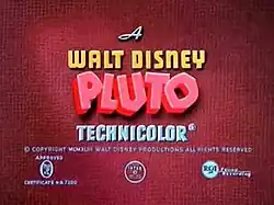 Pluto is a series of American animated comedy short films produced by Walt Disney Productions. The series started in 1937 with Pluto's Quin-puplets and ended in 1951 with Cold Turkey. The series stars the titular character Pluto, introduced in the Mickey Mouse film series as Mickey's pet dog, in addition to having recurring appearances by previously known characters such as Minnie Mouse, Figaro the Kitten, and Mickey Mouse, and also introduced well-known characters such as the chipmunk duo Chip 'n' Dale.[1]