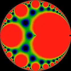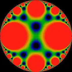The punctured disk model J-invariant in punctured disk coordinates; that is, as a function of the nome. J-invariant in Poincare disk coordinates; note this disk is rotated by 90 degrees from canonical coordinates given in this article A second common mapping of the upper half-plane to a disk is the q-mapping
