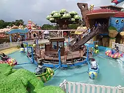 Themed to an old town of the American Wild West, this area features many western buildings and sculptures. The area boasts nine attractions which makes it the biggest area in the park. Other attractions in this area includes a wild west version of Breakdance ride and Dodgems.
