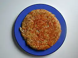 | Gamjajeon | | Korea | A variety of jeon, or Korean style pancake, made by pan-frying finely grated potato on a frying pan with vegetable oil. |