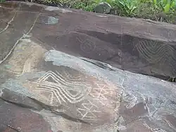 The cave paintings of this region have been instigating experts. In the Baixão da Perna 1 cave, for example, (in the archeological area of São Raimundo Nonato) cave paintings dating back 10,500 years have been found. At the site of the Boqueirão da Pedra Furada, numerous cave paintings in red pigment were found. The authors identify the painting tradition of this area as the "northeast tradition".[26] Besides the northeast tradition, subtraditions such as Várzea Grande (southeast of Piauí) and Seridó (Rio Grande do Norte) have been identified. The most abundant figures represent human beings, plants and animals, but purely abstract graphisms are also found. Some cave walls depict hunting scenes and ritual celebrations. According to some archaeologists, the themes of violence in ancient rock art would be linked to the technical development achieved in subsequent years, responsible for promoting more efficient hunting strategies. The northeastern tradition concluded about 5,000 years ago.[27]