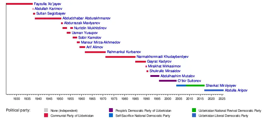 - Fayzulla Xoʻjayev (17 February 1925 – 17 June 1937)