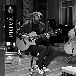 Privé is the first EP by the Dominican artist Juan Luis Guerra. It was released on December 25, 2020, and was distributed Universal Music Latin. It consisted in three new versions of Guerra's previous hits Las Avispas, Ojalá Que Llueva Cafe and Pedir Su Mano with acoustic arrangements and two new songs, Pambiche Pa` Mi Novia which was the lead single and "Donde Naces Tus Besos". The EP production consisted in an intimate sound based and oriented on Son and a slow version of merengue called Pambiche and with elements of jazz, blues, bossa nova and classical music along with the use of instruments piano, guitar, guira, vibraphone and saxophone. Privé was produced by Juan Luis Guerra and co-produced by his longtime arranger Janina Rosado.[1][2][3]
