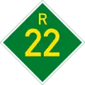 Provincial routes (also referred to as major regional routes) are the second category of road in the South African route-numbering scheme.[1] They are designated with the letter "R" followed by a number from 21 to 82, formerly with the letter "P" followed by a number from 66.[2] They serve as feeders to the national routes and as trunk roads in areas where there is no national route.