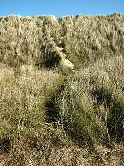 Efforts have also been made to improve the psammosere in some regards. In some areas, pine trees are an invasive species and can take over heathland.[9] The National Trust in the UK encourages people to pull up small Pine trees[10] as they can leave needles on the ground, which can prevent further psammosere succession through the dropping of needles.