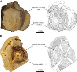 - ^ a b Jambura, Patrick L.; Kriwet, Jürgen (2020-04-22). "Articulated remains of the extinct shark Ptychodus (Elasmobranchii, Ptychodontidae) from the Upper Cretaceous of Spain provide insights into gigantism, growth rate and life history of ptychodontid sharks". PLOS ONE. 15 (4): e0231544. Bibcode:2020PLoSO..1531544J. doi:10.1371/journal.pone.0231544. ISSN 1932-6203. PMC 7176087. PMID 32320430.