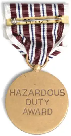The PHS Hazardous Duty Award is awarded to officers who served in positions requiring frequent and significant risk to their safety.[2][3] An officer qualifies for the award only once for a particular type of duty.[3]