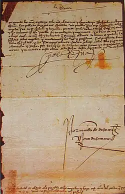 The foundation of Puebla begins with a letter from the bishop of Tlaxcala in 1530, Julián Garcés, to the Spanish queen outlining the need for a Spanish settlement between Mexico City and the port of Veracruz.[8] According to legend, the bishop had a dream about where to build the city. In this dream, he saw a valley with woods and meadows crossed by a clear river and dotted with fresh-water springs on fertile land. While he was contemplating this scenery, he supposedly saw a group of angels descend from heaven and trace out the city. Convinced he had seen a divine vision, he celebrated Mass, and took some of the brothers out in search of the place. Five leagues from the monastery he declared they had found the place shown in the dream. This legend is the source of Puebla's original name, Puebla de los Ángeles, and its current nickname Angelópolis (literally, City of Angels).[3][9]
