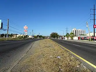 The road is an 8-lane divided highway in its western approach to Ponce. After its intersection with the PR-52 expressway, the road becomes a 6-lane at-grade roadway in the city of Ponce. It provides access to barrios Canas, Playa, Canas Urbano, San Antón, Bucaná, and Sabanetas. It provides access to four of Ponce's beaches, to the Damas and Dr. Pila hospitals, to various shopping plazas including the Plaza del Caribe Mall and Centro del Sur Mall, the Puerto Rico Judicial Center, the University of Puerto Rico at Ponce, the Mercedita Airport, and numerous restaurants and other facilities. The PR-2 segment corresponding to the city of Ponce was built in the late 1940s and is known as the "Ponce By-Pass",[2] since it was used to "bypass" the urban and commercial city center when traveling due east from western towns such as Guayanilla, Yauco, San Germán, and Mayagüez, to towns in eastern Puerto Rico such as Salinas, Guayama, Cayey, Caguas, and San Juan. The section of PR-2 between Guayanilla and Ponce opened in 1965.[7]