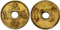 For the first year of the Tongzhi Emperor he bore the reign name of "Qixiang" (祺祥), though a few coins with this inscription were cast they were never put into circulation. While the reign title "Qixiang" the 10 wén Daqian continued to be produced, for a brief period of time Daqian with the inscription Qixiang Zhongbao (祺祥重寶) were produced.[25] Because the Qixiang era name was not used for that long, cash coins with this era date were cast for such a short time, that only a small number of the government mints produced cash coins with this inscription. These mints included the Ministry of Public Works Mint (寶源), the Ministry of Revenue Mint (寶泉), the Yunnan mint (寶雲), the Gansu mint (寶鞏), and the Suzhou mint (寶蘇).