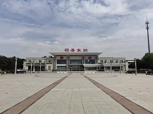 The Qixian East railway station (Chinese: 祁县东站) is a railway station of Datong–Xi'an Passenger Railway that is located in Qi County, Shanxi, China. It started operation on 1 July 2014, together with the railway.