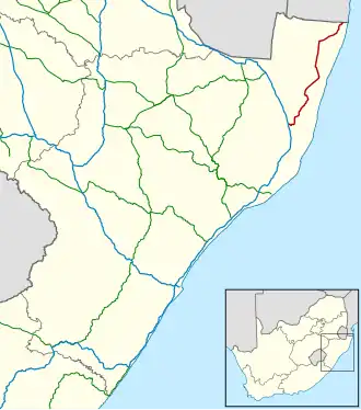 The R22 is a provincial route in the KwaZulu-Natal province of South Africa, connecting the N2 at Hluhluwe with the Mozambique border at Kosi Bay, via Mbazwana and Kwangwanase. It was opened on 25 October 2008.[1][2]