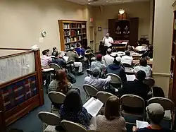 Klapper first launched the Summer Beit Midrash in 1997 as a six-week all-male kollel geared toward understanding the process of deciding halakha. 15-20 fellows are selected each year to participate. In 2004, after being overwhelmed with applications from women and unable to fund a second program, Klapper made the program co-ed, saying "Psak is largely a function of people asking questions. If someone knows their stuff, others will ask them. We live in a time where I expect women to exercise leadership in the halakhic community." Students study daily, from morning prayers until late at night, and spend the final week writing an amateur responsum in response to that summer's designated question.[36] Each summer's fellows give lectures at synagogues around New England and learn b'chavrusa with community members.[37] In 2009, the program relocated to the Young Israel of Sharon, Massachusetts.[38]