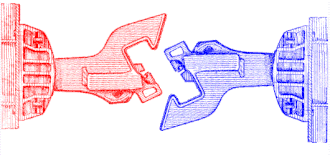 Two versions of radial coupler were used in South Africa. One, the Johnston coupler, commonly known as a bell link-and-pin coupler, was introduced in 1873 and is similar in operation to and compatible with link-and-pin couplers, but bell-shaped with a circular coupler face. The other, the bell-and-hook coupler, was introduced in 1902 and is similar to the Norwegian coupler, but also with a circular coupler face and with a coupler pocket which is open at the top of the coupler face to accommodate the drawhook.[7]