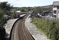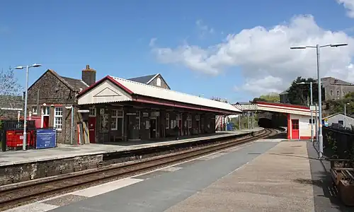 Redruth station serves the town of Redruth, Cornwall, United Kingdom; it is situated on the Cornish Main Line between Truro and Camborne. The station is 309 miles 68 chains (309.85 mi; 498.7 km) down the line from the zero point at London Paddington, measured via Box and Plymouth Millbay.[1]