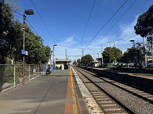 ![]() Southbound view from Platform 1, August 2024 | |||||||||||||||||||||||||||||||||||||||||||||||||||||||||||||||
