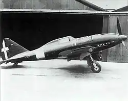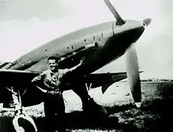 Entering squadron service in April 1943, the Re.2005 participated in the defense of the Italian homeland, including of Naples, Rome and Sicily. In addition to its use by the Regia Aeronautica, the Luftwaffe also became interested in the type. However, the Re.2005 was never produced in large numbers, only 48 aircraft having been delivered before the Armistice of Cassibile was enacted in September 1943; production of the type came to an end during the following year. Nevertheless, both sides of the conflict operated the fighter in the closing months of the conflict; Re.2005s (in German insignia) were present during the final defense of Berlin in 1945.[3] The type garnered a reputation of not only to be one of the best Axis wartime aircraft but also one of the best, if not the best-looking.[4] British ace and military observer, Group Captain Duncan Smith, DSO DFC, stated that "The Re.2005 was altogether a superb, potent aeroplane".[5]