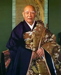 An avid practitioner of zazen, he rebuilt the zendo (meditation hall) so that the young people in training could better engage in this essential practice.[4] His dharma heirs include Gudō Wafu Nishijima[6][7] and Moriyama Daigyo as well as several teachers affiliated with the Taisen Deshimaru Lineage in Europe.[1] Zenji (literally, "Zen Master") is an honorary title given to the senior Eihei temple (Eihei-ji), headquarters of the Sōtō school, founded in the thirteenth century by Master Dogen.