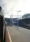 Renens VD has three island platforms and one side platform. A single island platform serves the Lausanne Metro with two tracks (Nos. 61–62) which terminate at the station. The remaining platforms serve five main-line tracks (Nos. 1–7).[5] Transports publics de la région lausannoise operates bus services from the station.[6]
