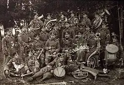 It was commissioned by the Bulgarian Government in 1878, with originally 20 Czech musicians led by Josef Chochola in the band. In 1892 this orchestra was transferred to Sofia from Veliko Tarnovo and was enlisted as part of the Bulgarian Life Guards Squadron. The first ethnic Bulgarian to be appointed as the chief conductor of the band was Maestro Georgi Atanasov.[1] In 1944, after the communist coup, the band was dissolved and the remaining musicians were sent to the town of Breznik. In 1951, the band was restored as the Central Brass Band of the Bulgarian People's Army. Since its restoration, the band's musicians wore regular infantry uniforms instead of the uniform of the guards unit. The guards band was reestablished in 2001, with its former status and original name.[2][3][4][5] [6]