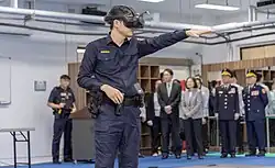 The Auxiliary Police (Traditional Chinese:義勇警察) is an auxiliary organization that civil voluntarily join to support the police and perform civil defense tasks.[29] Although the auxiliary police do not have a standard rank insignia, the Taipei City auxiliary Police has adopted a non-standard rank insignias with modified colors based on the current police rank insignias.[30]