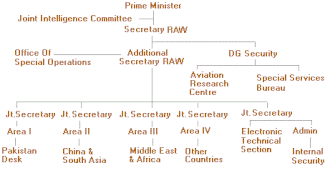 The head of R&AW is designated Secretary (Research) in the Cabinet Secretariat, part of the Prime Minister's Office.[5] This is similar to other secretarial posts such as foreign secretary and home secretary.[41] Most of the previous chiefs have been experts on either Pakistan or China.[5] They also have the benefit of training in either the USA or the UK, and more recently in Israel.[5][42] R&AW works directly under the command of the Prime Minister. Its structure and operations are classified.[5] On a daily basis, the Secretary (R) reports to the National Security Adviser.[5] The purview of the Cabinet Secretary over the R&AW is limited to administrative and financial matters.[5] The Secretary (R) reports on an administrative basis to the Cabinet Secretary, who reports to the Prime Minister.