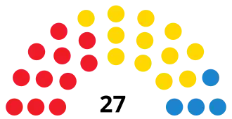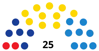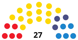 Telde Population: 91,160 ← Summary of the 25 May 2003 City Council of Telde election results → Parties and alliances Popular vote Seats Votes % ±pp Total +/− Canarian Coalition (CC) 17,975 36.07 −15.19 10 −5 People's Party (PP) 14,446 28.99 +1.86 8 ±0 Federal Group of Jinámar Valley–Citizens for Change Platform (AFV–CIUCA) 10,026 20.12 +14.17 5 +4 Spanish Socialist Workers' Party (PSOE) 5,041 10.11 +3.34 2 +1 The Greens of the Canaries (Verdes) 816 1.64 New 0 ±0 Coalition for Telde (CT) 496 1.00 New 0 ±0 Canarian United Left (IUC) 466 0.94 −1.79 0 ±0 Socialists of the Canaries (SDC) 106 0.21 New 0 ±0 Blank ballots 467 0.94 +0.01 Total 49,839 25 ±0 Valid votes 49,839 99.51 +0.36 Invalid votes 243 0.49 −0.36 Votes cast / turnout 50,082 68.89 +5.06 Abstentions 22,617 31.11 −5.06 Registered voters 72,699 Sources[ 1] [ 5] [ 11]