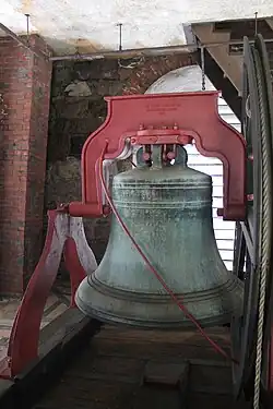 For more than a century (the bell) was rung daily morning, noon and evening, at stated hours, besides announcing hours of religious services and alarms of fire, tolling for departed citizens, and pealing in honor of independence days and other occasions of joy. On account of its age it has been retired from regular duty, but still on special occasions is sparingly used.[4]